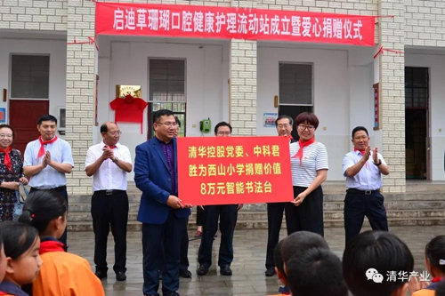 清华控股党委、中科君胜为西山小学捐赠价值8万元智能书法台