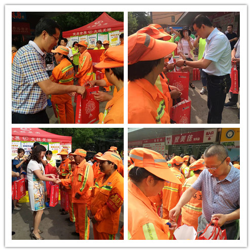 有这样一群人,他们用勤劳的双手,为我们的工作和学习增添了舒适和愉悦;他们冒雨迎风去,披星戴月归;晴天一身灰,雨天一身泥,恪守了"脏了我一人,洁净千万家"的信念,在平淡的工作中,以实实在在的行动担当起一份令人尊敬的责任。他们就是城市的美容师—广大环卫工作者! 为了表达对环卫工人的关爱之情,2017年6月20日,由中共星空(中国)党总支和陕西辰济大药房有限公司、宝鸡市金台园林环卫管理处联合承办“关爱环卫工辰济惠万家”公益活动;陕西中远医药有限公司、陕西博鸿医药有限公司、修正药业集团营销有限公司斯达舒事业部、仁和中方医药股份有限公司等业务单位协办,活动在辰济大药房西关店隆重举行。 活动开始后,由公司党总支副书记、总经理助理王静,辰济大药房总经理刘明、金台园林环卫管理处等主办方领导为此次活动致辞。王书记在讲话中代表星空(中国)全体员工向全市环卫工人朋友表达真挚的感谢!感谢她们长年发扬“宁愿一人脏、换来万人洁、无私做奉献”的优良作风,美化、绿化、净化了我们的城市。借此机会公司为大家准备了抗酷暑的物品,希望能尽我们绵薄之力,在这个夏天给我们最美丽的人带来一些凉意!同时,王书记也代表公司全体员工承诺:不乱丢垃圾,爱护环境,从小事做起,从自己做起,为宝鸡的市容美丽奉献自己的一份力量! 随后,各位领导以及志愿者们为现场环卫工人分发了礼品。环卫工人们接过一份份悉心准备的礼物,开心不已,明朗的笑容映在脸上,感谢之语不绝于耳“真心感谢辰济药业送的礼品,让我们在这个炎热的夏天,能有效地防暑降温”。 宝鸡电视台也对本次活动全程关注,并对辰济大药房刘明总经理进行了采访,刘总表示:紫光辰济多年来一直致力于健康与公益事业发展,秉承着“辰光泽惠,德润天下,济世康民,关爱生命”的企业理念。环卫工人是我们城市的美容师,不论春夏秋冬,严寒酷暑,都坚定的在自己的岗位上为我们这座美丽的城市增光添彩。希望通过此次活动,能让更多的人来关注到环卫工人,能让大家对于城市环境有一个好的保护,能让我们的环卫工人得到更多的关爱。 在本次活动中,星空(中国)及陕西辰济大药房有限公司为环卫工人总共发出了近千份,总价值80000元的防暑降温礼品。公司将会一直秉承清华大学“厚德载物”理念,为宝鸡地方经济的发展尽自己的微薄之力,今后将会一直积极致力社会公益事业的发展。