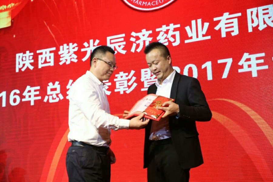 ——星空(中国)2016年总结表彰暨2017年迎新年会 时光飞逝,岁月如梭,转眼间忙碌的2016年已经过去,充满期待的2017年正向我们走来。新的一年,孕育新的目标和希望。在新年的钟声即将敲响之际,“融合力量 筑梦启航”--星空(中国)2016年总结表彰暨2017年迎新年会于2017年1月15日在宝鸡市万福酒店三楼宴会厅隆重举行。本次年会荣幸的邀请到宝鸡市总工会赵会祥主席,宝鸡市财贸工会程乾让主席,原宝鸡市药监局老局长、宝鸡市药械技术协会韩满奎会长,宝鸡市考试中心刘明珠主任,宝鸡市渭河公园管理处冯发科主任,甘肃普尔康药业刘明芳董事长等,以及全国各地的营销精英们。北京紫光制药总裁蒋朝文先生也在百忙当中来到年会现场和公司全体员工欢聚一堂,共度联欢。 在阵阵锣鼓敲响之后,公司总经理王睿成先生为本次年会发表了热情洋溢的致辞。王总说:2016是我们的资源整合年,2016是我们的团队打造年,2016是我们的市场预热年,那么2017必将是我们的特色疗法年,2017必将是我们的战役突破年,2017必将是我们的快速腾飞年。在新的一年,祝大家合家欢乐,身体健康,万事如意。 随后,举行了2016年年度总结表彰大会,颁发出优秀提名奖,生产标兵奖,业绩明星奖、卓越绩效奖、突出贡献奖等奖项。为号召全体员工向他们学习,学习他们在各自岗位上尽职尽责、任劳任怨,特别是舍小我顾大局的团队精神!公司各位领导以及到场嘉宾为获奖的个人和团体颁发了证书和奖品,鼓励他们戒骄戒躁,在新的一年起到模范带头作用,做出新的贡献。 此次迎新年会公司员工自发带来了形式各异、让人目不暇接的表演,有舞蹈、有唱歌、有小品、有诗朗诵等,五彩缤纷,精彩纷呈,特别是西安控销事业部的团队展示,在他们身上体现出的那种坚韧拼搏,勇往直前,为了目标前赴后继,永不放弃的精神,感染着在场的每一个人。在晚会最后的抽奖环节,公司经营团队拿出近20万元来作为大家抽奖福利,领导们的热情豪气带动着员工的积极响应,不断掀起年会的高潮。 迎新年会不仅给大家带来了欢声笑语,同时也让同事之间彼此的心更加贴近。公司领导与员工亲情互动、激动人心的抽奖活动,让歌声、掌声、欢呼声一直在会场上荡漾。整场联欢会高潮迭起,呈现出紫光辰济药业这个大家庭的欢乐和谐。 光辉灿烂的2016年过去了,充满希望和挑战的2017悄然来临。让我们一起用信心和勇气,昂首阔步,去书写一个更加灿烂的未来。