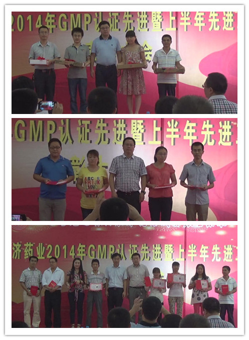 公司2014年上半年GMP认证及上半年先进工作者表彰大会 2014年8月22日,我公司召开了陕西辰济药业有限公司上半年GMP认证及上半年先进工作者表彰大会,并取得圆满成功。 2014年8月22日下午,在公司制药厂员工食堂表彰大会伴着高亢的《团结就是力量》缓缓拉开了序幕。公司董事长张轶先生与总裁蒋朝文先生不远万里从北京来到宝鸡参加了这次表彰大会,并带来了黄俞董事长的祝贺和慰问。 会议首先,由公司总经理王睿成先生致辞,在王总的讲话中,对公司上半年的工作进行了认可,并对在GMP认证工作中突出贡献的员工及先进工作者提出表扬和感谢。王总的讲话满怀激情,很是振奋人心,讲话内容更是对辰济的美好未来胸有成竹,大家纷纷表示对于接下来的工作会更加努力。 其次,颁发奖项。第一项特别贡献奖、突出贡献奖,由张轶董事长为李继虎先生、陈博、张晓梅、汪君平四人颁发荣誉证书及奖品并合影留念;第二项记大功奖,由蒋朝文董事为甘辉、苏晓艳等四人颁发获奖证书及奖品并合影留念;第三项记功奖,由王睿成总经理与肖红星副总经理为王志斌、魏高峰等八人颁发荣誉证书及奖品并合影留念。接着由陕西辰济药业有限公司经营团队为2014年上半年先进工作者梁红芳、翟全魁、盛群等25人颁发荣誉证书及奖品并合影留念表彰。每个获奖人员也发表了内心深处的获奖感言。 最后,辰济药业董事长张轶先生与蒋朝文总裁发表重要讲话,在讲话中,张董与蒋总对上半年的成绩表示赞扬和肯定,也对获奖者表示衷心的祝贺,还对下半年的工作提出了殷切的希望,更对陕西辰济药业有限公司的未来表示充满信心,希望辰济药业的员工能够更加充满信心,努力创造辰济药业美好的明天。会后,辰济药业全体员工与集团领导、公司领导进行合影留念,留下了珍贵的回忆。 此次表彰大会彰显了我公司员工勇于创新,积极进取的精神风貌,并让公司未获奖的员工清楚地意识到自己的不足之处,以先进者带动后进者,形成互学赶帮的工作氛围,努力把辰济药业的医药品牌做大做强,为陕西辰济药业有限公司更加美好的未来努力奋斗。