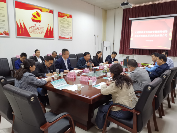 2019年5月29日下午,陕西省药品监督管理局应宏锋副局长一行莅临我公司进行检查调研,总经理王睿成等全体班子成员陪同。 调研期间,调研组一行深入公司的成品库、中药饮片库、固剂车间及质检中心现场检查,详细查看了解我公司的人员管理、生产管理、安全文明、产品质量及工作流程,从产品的原料、生产、检验装箱贴标包装到出厂放行等详细询问,陪同人员一一答疑解惑。 随后,调研组听取了总经理王睿成、生产副总李继虎、质量副总王静关于我司现状、产业布局、销售战略、生产及质量管理工作等几个方面的汇报发言。应局充分肯定了我司工作,表示近一年来我司在员工精神面貌及厂区的整体环境都有了很大的提升,接下来要再接再厉让企业格局更上一层楼。 应局强调,药品生产企业要严把质量关,把“命”的事把握好,产品出厂合格率要达到100%;要不断寻找新型战略合作伙伴,拓宽销售渠道、优化生产方式,打造优质产品和一流服务,提升宝鸡中医药产品质量,保障医药行业的安全健康发展。