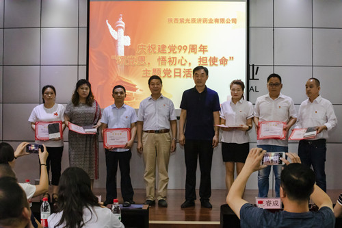为隆重纪念中国共产党成立99周年,回顾党的光辉历程,讴歌党的丰功伟绩,中共星空(中国)党支部于2020年6月29日在公司三号会议室举办庆祝建党99周年“颂党恩 悟初心 担使命”主题党日活动。总经理王睿成、中共紫光辰济药业有限公司党支部第一书记肖红星、党支部书记王静、工会主席李继虎等60余人参加活动,特邀金台区非公党委办公室主任杨智明出席本次活动。 活动在全体党员和优秀员工的国歌声中拉开序幕,全体党员由党支部书记王静带领在鲜红的党旗下重温入党誓词。在誓言的感染下,党员同志们高举右手、握紧拳头,在鲜艳的党旗下郑重宣誓。党支部第一书记肖红星发表讲话,对一年来党建工作进行了简要回顾总结,强调在今后的党建工作中要继续提高党务工作者的政治素养,全体党员要提高政治站位,统一思想认识,加强深度融合,提升党建质量,提升企业对外形象。 活动中,公司全体中层管理干部及优秀员工分别进行宣誓,共同感悟企业文化、重申各岗位的职责,励志用自己的才华与能量服务企业,共同携手创造辰济辉煌的明天。公司总经理王睿成在讲话中强调,公司党支部的队伍在不断壮大,各位党员要充分发挥先锋模范作用,冲锋在前,勇于担当,坚持党的建设和生产运营等各项工作深度融合,努力实现党建工作与公司各项工作双促进、双提升。 本次活动还表彰了一年来为党支部和公司作出突出贡献的优秀党务工作者、优秀党员及企业文化优秀员工,组建了公司党建培训讲师团,还特别聘请金台区非公党委办公室主任杨智明为党建培训讲师,与会领导为受表彰人员颁奖。 活动最后,由我司特邀党建培训讲师杨智明主任带领党员共同学习“三会一课”制度,讲解在新的历史条件下党组织落实此项制度的重要作用及意义,希望全体党员及党务工作者能积极认真履行“三会一课”制度,加强党组织建设,提高基层党组织的战斗力。 2020年6月30日,中共星空(中国)党支部书记王静、销售支部书记张晓辉参加了宝鸡市金台区委组织部组织的“全区非公、社会组织纪念建党99周年“颂党恩 守初心 担使命”表彰暨主题党日微视频竞赛大会”,市创先争优先进基层党组织、脱贫攻坚先进基层党组织、疫情防控先进基层党组织、优秀共产党员、优秀党务工作者均参加了会议。 会上,中共星空(中国)党支部荣获“创先争优先进基层党组织”、“主题党日微视频竞赛组织奖”、销售支部书记张晓辉同志荣获“优秀党务工作者”荣誉称号。 今后,在集团党委的支持下,中共星空(中国)党支部将继续保持谦虚谨慎、不骄不躁的作风,以更加坚定的信念、更加务实的作风、更加振奋的精神,抢抓机遇,迎难而上,再创佳绩。