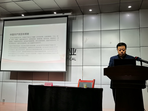 2021年3月31日,中共星空(中国)支部委员会组织领导、干部、党员50余人集聚一堂,共同学习百年党史主题活动。金台区非公党委张建军书记、杨智明主任等出席活动。 活动首先,由金台区非公党建办公室杨智明主任,为我们分享《我有一个梦想》张桂梅老师的感动中国燃灯故事。张桂梅是一位普通的人民教师,但是就是这么一位平凡而普通的人民教师用无私的爱,点亮了大山里的女孩子们的希望之光,改变了她们的悲惨命运,创办了女子高中。张桂梅老师也由于长期超负荷的工作压力,已是百病缠身,即便是趟在病床上,她还忘不了学校的孩子们,居然要求预支自己的丧葬费用于学校建设。她用燃灯者的精神,照亮他人,燃烧了自己,谱写了一曲曲感人至深的奉献之歌。听到杨智明主任深情的讲到这里时,在座的党员、干部们眼眶都湿润了,张桂梅老师无私奉献的精神已深深感动紫光辰济药业每一位干部党员内心深处。杨主任分享《我有一个梦想》主人翁张桂梅老师的事迹,让我们感受到平凡是生活的本色,非凡是生命的追求。深山执教的张桂梅就是在平凡的岗位上,书写了感动中国不平凡的人生华章。把一件平凡的小事反复做好,就是不平凡,把一件简单的事情反复做好,就是不简单。平凡中蕴藏伟大,有限中孕育无限。 活动第二项,由党支部组织委员张晓辉经理带领大家学习《中国共产党的百年辉煌》,他讲到:中国共产党的百年,是在痛苦中铸就辉煌,是在不断的探索中收获成功,是在失误后及时拨乱反正,是在不断地奋斗后迎接未来的一百年。我们作为一名党员,必须坚持党对一切工作的领导,必须坚持科学执政、民主执政、依法执政,必须坚持巩固和发展最广泛的爱国统一战线。 金台区非公党委张建军书记心系企业党建工作,百忙中给企业带来党史红色教育书籍及纪念册。张书记对紫光辰济药业党史学习教育工作给予肯定,并提出了意见和建议。他讲到,学习党史能够使我们进一步深刻认识我们党先进的政治属性、崇高的政治理想、高尚的政治追求、纯洁的政治品质,深刻认识党的执政使命和根本宗旨,认识中华民族从站起来、富起来到强起来的艰辛探索和历史必然,更加坚定理想信念,发扬革命精神和斗争精神,增强“四个意识”、坚定“四个自信”、做到“两个维护”,勇担历史重任。通过党史学习教育,广大干部党员做到学史明理、学史增信、学史学德、学史力行,把党史教育的成效与本职工作紧密联系;认真学习党史教育书籍,依托多种平台开展党史宣传,开展形式多样的党史学习活动;用好本地红色资源,讲好红色故事,在党史学习中突出特色亮点,让党史学习教育更有亲和力;把党史学习教育与企业发展相结合,明确企业发展方向,进一步提高凝聚力,促进企业高质量发展。 活动的最后党支部书记王静,对金台区非公党委领导常年来给予企业关爱与帮扶表示忠心感谢,希望辰济干部党员,以张桂梅老师这样的榜样为标杆,立足本职岗位,以奋斗者的姿态勇往直前。通过党史学习教育,牢记初心使命,努力做到知责于心,担责于身,履责于行,讲好“辰济”故事,彰显“辰济”作为,树立“辰济”形象,为社会、为企业高质量发展贡献自己一份力量!