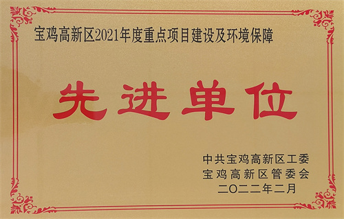 星空(中国)荣获“宝鸡高新区2021年度重点项目建设及环境保障先进单位” |