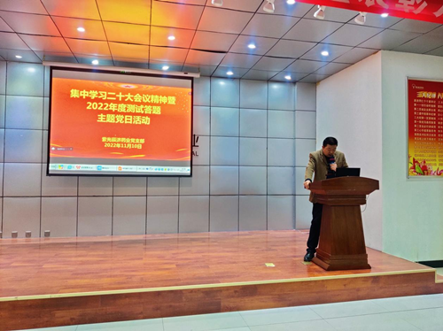 党的二十大会议刚刚闭幕,全社会就掀起学习二十大会议精神和宣讲的高潮。为了深刻领会党的二十大会议精神,全面推进公司党建融合工作走向深入,根据山西建投集团党委工作部署要求,紫光辰济药业党支部于2022年11月10日在公司三号会议室组织开展了党员干部集中学习党的二十大会议精神暨2022年度测试答题主题党日活动,公司全体党员、管理干部、入党积极分子共计四十多人参加了此次学习测试活动。 集中学习环节,公司党支部王静书记以视频形式给参会人员传达了党的二十大会议精神,王静书记细心制作的PPT吸引了在座人员的学习热情,精心提炼的内容让大家对二十大会议精神理解的更加立体和深刻。通过王静书记的讲解,大家更加坚定了永远听党话、永远跟党走的初心使命,在各自的工作岗位上,发挥自己的聪明才智,为党和企业积极工作,实现个人价值的最大化,将企业建设和发展的更好,为建设中国特色社会主义强国做出自己应有的贡献。