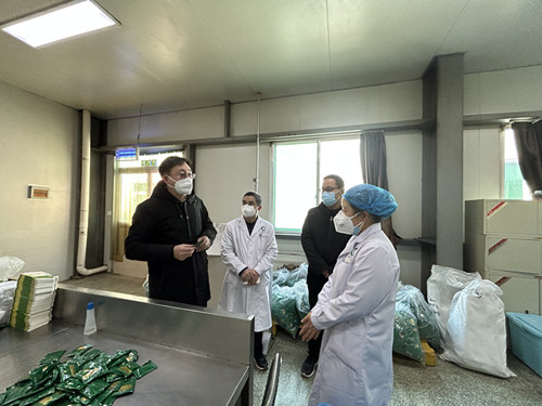 调研专班组一行参观了公司成品库房和生产车间,询问了公司的原料储备情况,疫情防控及各项安全措施执行落实情况。崔局长强调,企业在加快生产同时保证药品质量安全,要把药品生产质量安全作为企业的生命线,强化内部管理,严格质量管控,做好个人防护,严防交叉感染,做到有效防疫与生产经营两不误,药品质量安全事关人民群众身体健康和生命安全。总经理王睿成表示,车间马力全开,加班加点生产防疫产品,公司在确保防疫、生产安全前提下,全厂总动员最大力度提升生产效能。