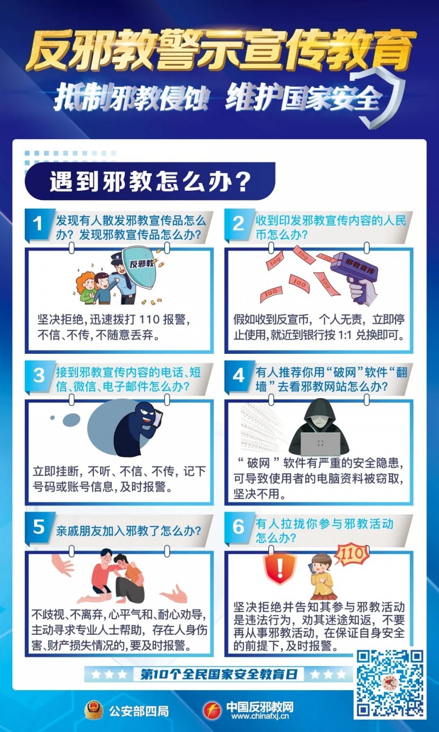 国家安全无小事,反邪防邪靠大家。让我们以全民国家安全教育日为契机,树牢总体国家安全观,崇尚科学、反对邪教、珍爱家庭、守护平安,共同筑牢维护国家安全和社会稳定的坚固防线!